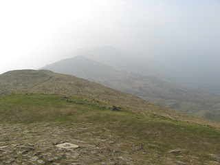 Anyway, we got of the train and headed towards the visitor's center (even a tiny town like Edale has a visitor's center). We found a guidebook that had a list of walks that were between 2 and 10 miles. We were slightly ambitious and decided to pursue a 6 mile hike. We did, after all, have all day. We did complete the hike, which we have to say, was VERY poorly marked. This caused us to backtrack quite a bit, adding about 3/4 mile to our journey. The big downer of the day, though, was the clouds and fog. We got on top of these huge hills/rises/what have you and couldn't see a thing. So my pictures aren't the greatest, but you'll probably get the idea.